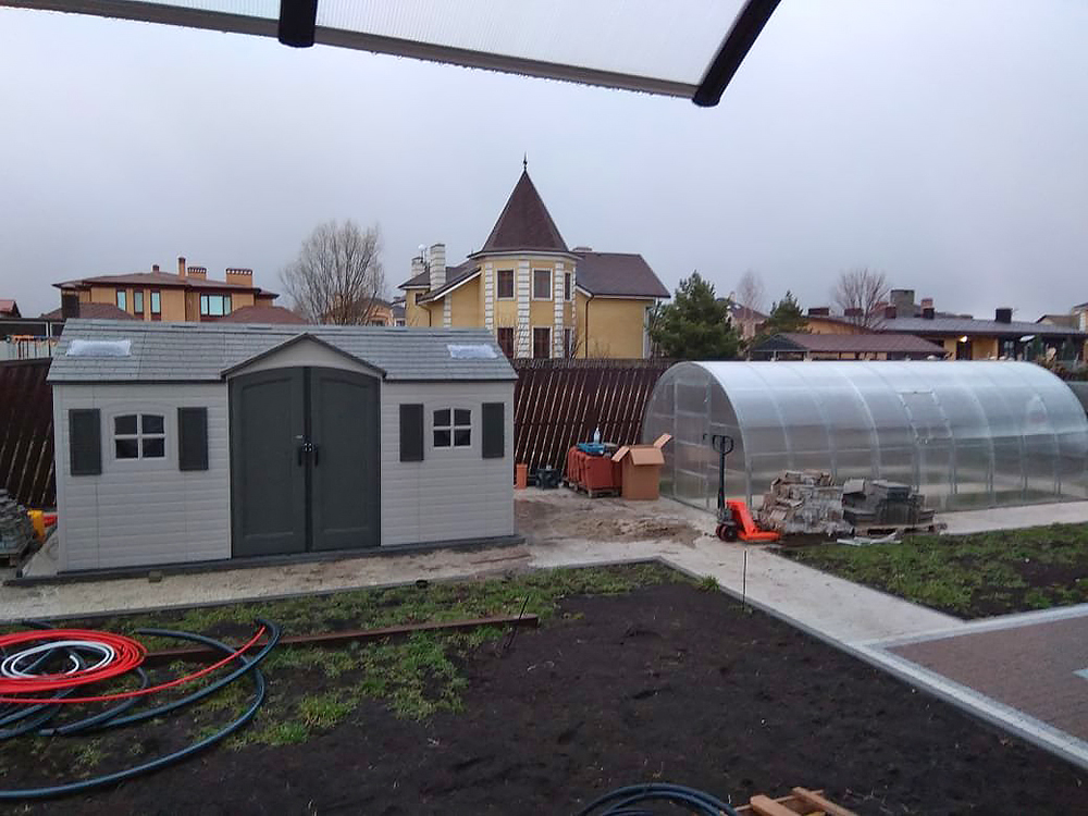 Пластиковый сарай Lifetime на садовом участке
